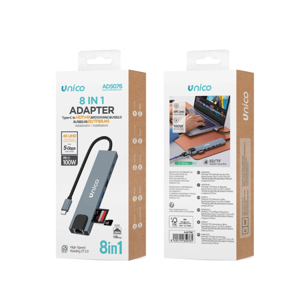 O acessório indispensável para quem utiliza computadores e dispositivos modernos com portas USB Tipo-C. Este adaptador compacto disponibiliza 8 interfaces essenciais, permitindo expandir de forma imediata as possibilidades de ligação: