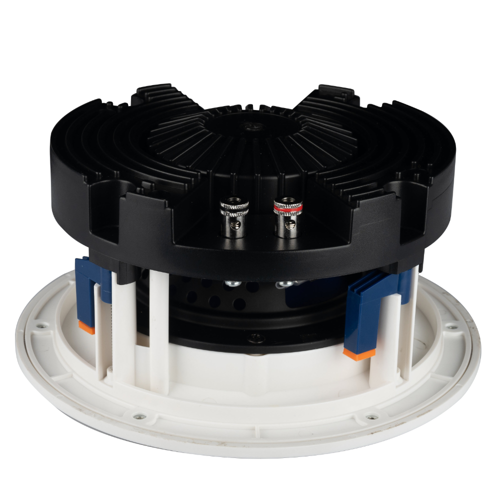 Está equipado com um woofer de 6,5″ e um tweeter de 1″, garantindo um som equilibrado e nítido em todas as frequências. A grelha, sem bordas visíveis, fixa-se ao difusor através de ímãs, proporcionando uma instalação discreta e elegante.