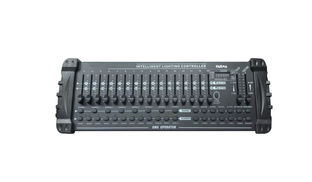 Controlador DMX512 projetado para a gestão profissional de efeitos de iluminação.