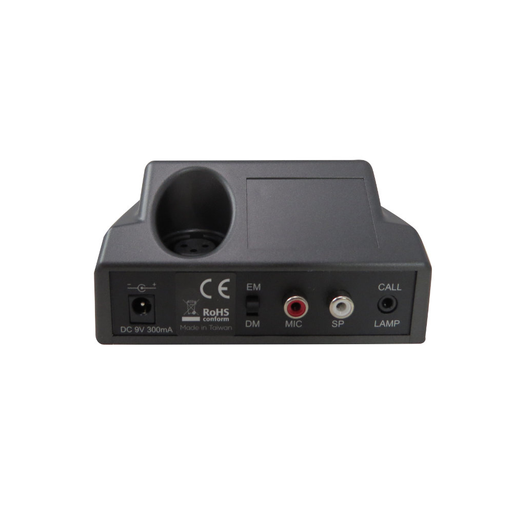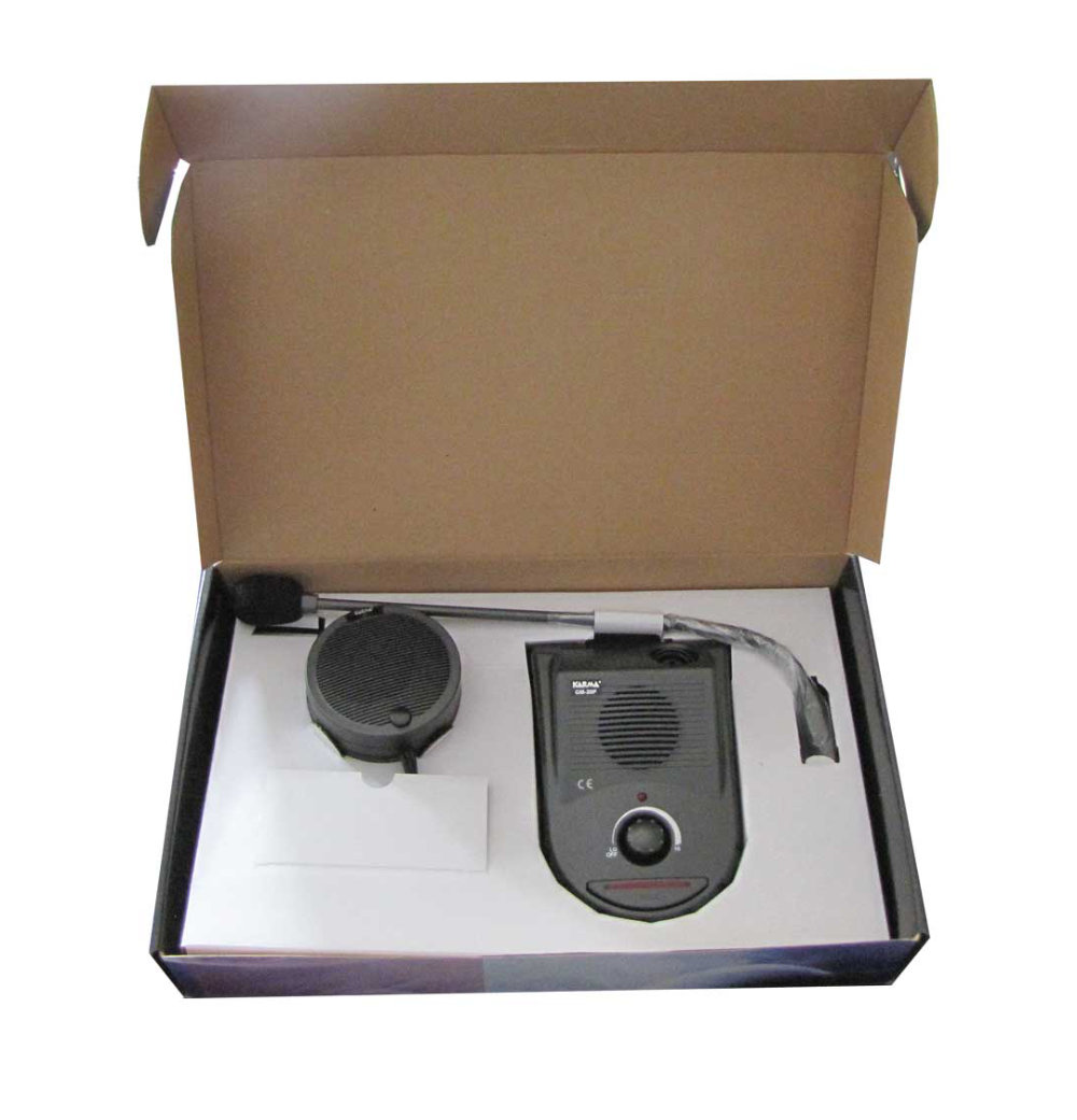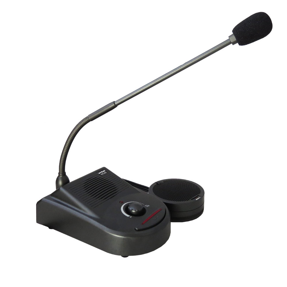 Destinado ao uso em estabelecimentos públicos, como correios, bancos, etc. consiste em um microfone GOOSENECK de 38 cm de comprimento dedicado ao operador interno e um segundo pequeno microfone a ser aplicado do lado de fora da porta com um botão de chamada.